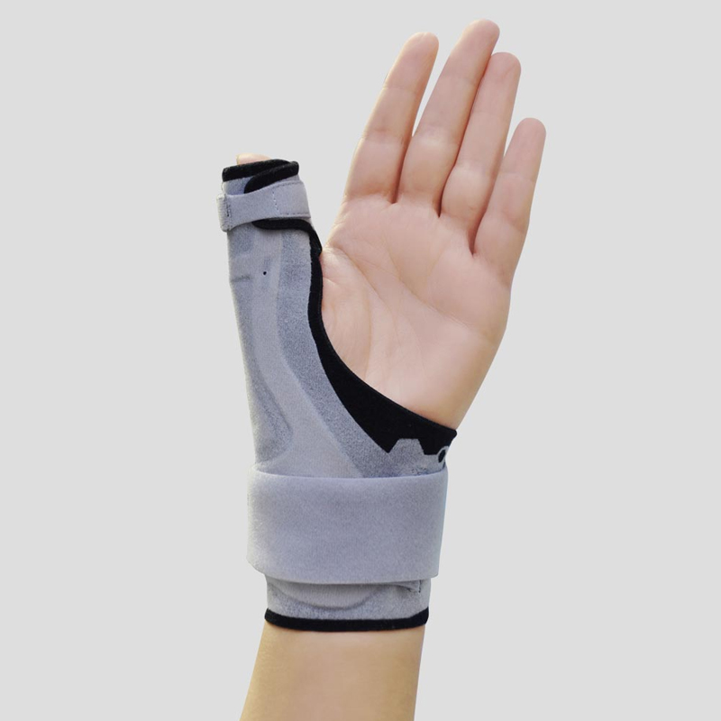 Алюминиевая опора толщиной 1 мм окружает большой палец и запястье и стабилизирует пястно-фаланговый сустав.