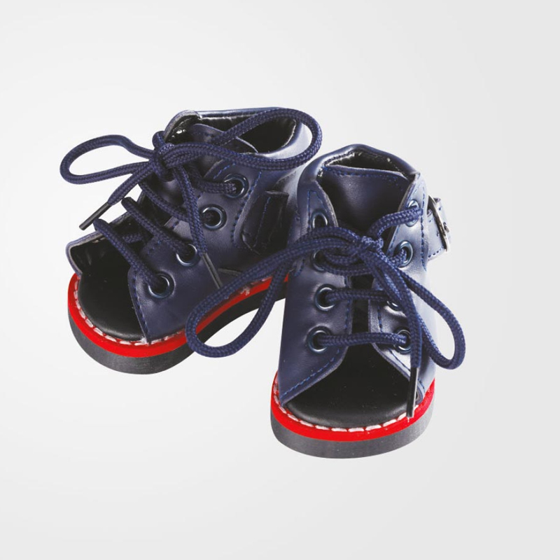 Ботинки на шину Дениса Брауна. Снизу – прочная кожа, а верх – кожа со шнурками, носки и пятая открыты.